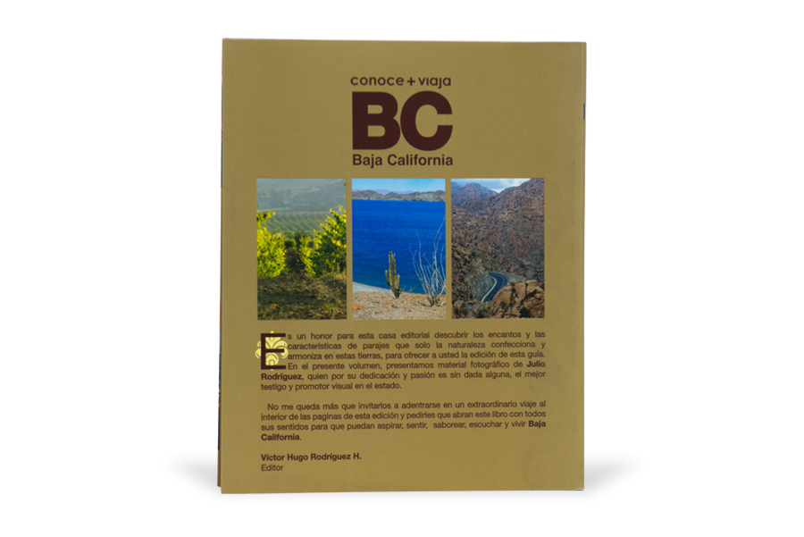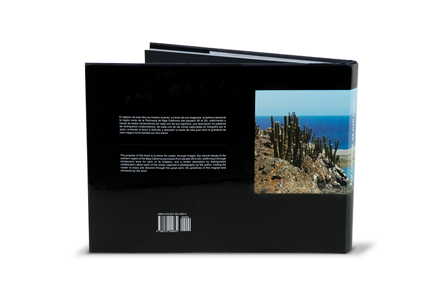 Este libro muestra al lector, a través de sus imágenes, la belleza natural de la región norte de la Peninsula de Baja California (del paralelo 28 al 32), reafirmando a través de texto introductores de cada uno de sus capítulos, una descripción en palabras de distinguidos colaboradores, de cada una de las zonas capturadas en fotografía por el autor; invitando al lector a disfrutar y descubrir a través de esta gran obra la grandeza de esta mágica tierra bañada por dos mares.